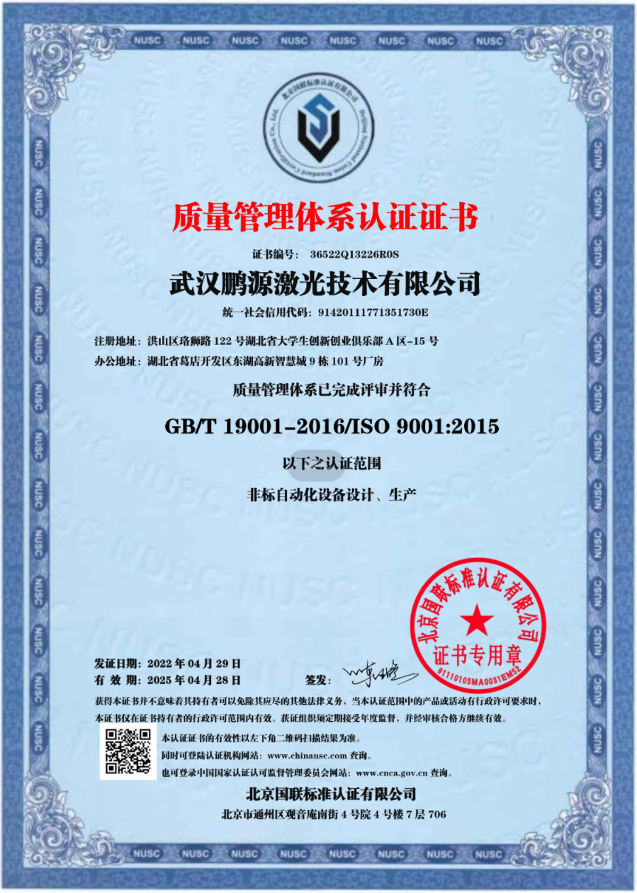 武汉鹏源激光技术有限公司成立于2005年,截止目前,已有上万套设备在各个行业使用。公司提供的产品质量稳定,服务优异,受到客户的信赖。已在多个钢铁集团取得了业绩,并研发出各种专利的工艺设备。在唐山、江阴、湘潭、成都建有办事处。