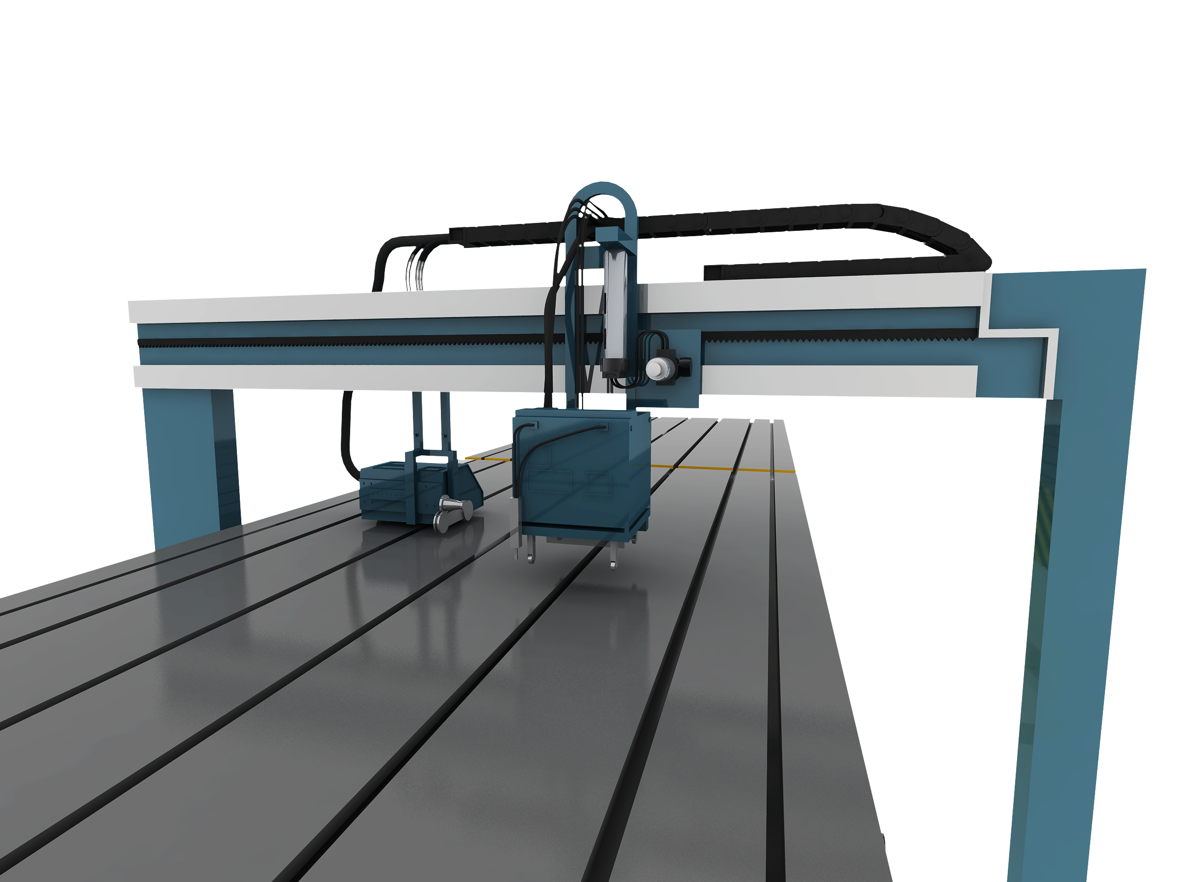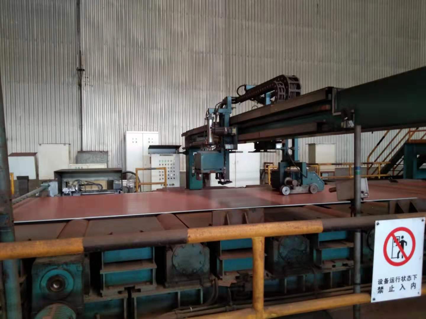 辊道运动方向前端安装钢印设备,后端安装面喷设备。钢印小车和面喷小车共用一套龙门机构。
